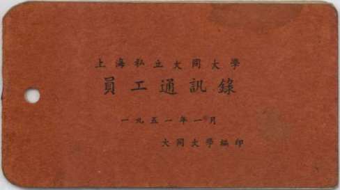 笔者近日觅到的这本小册子(1951年版),也不算什么珍奇,但为档案馆本来就没有任何大同流转过来的卷本填补了零的空白。翻开通讯录,华理历史上记载的17名教师,大多位列其中,如大家熟悉的严沛霖、徐寿昌、琚定一等,但当时另外还有10多位员工也从大同来到了化工工作,这是不为现在的华理人所知晓的。通讯录,顾名思义,当然有名有姓,如陆映北先生,他来学校后,长期在院长办公室等部门工作,且写得一手好字,是现在后生们所望尘莫及的。据说当时学校所有的公告、布告均出自他老之手,其书写技艺颇得老院长赏识,可惜我辈没能有机会目睹真迹。如此道来,假如当初有人收集之,现在倒也不失为华理“一宝”呢。