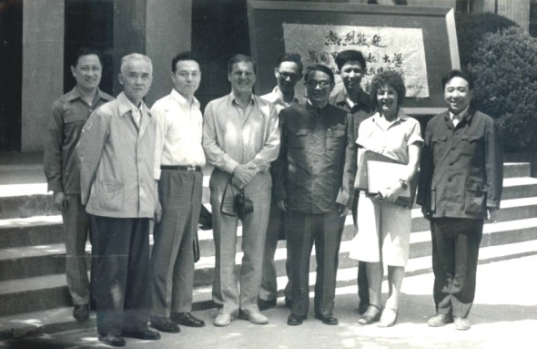 图片说明:1982年5月,朱正华院长等与前来我校讲学的英国里兹大学友人合影