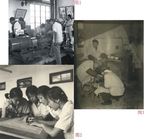 图片1:1950年代我校学生在做汽轮发电机诊断实验。画面中的女同学在谨慎操作蒸汽流量控制阀门,男同学用一根类似医生用的听诊器的管子在侧耳细听发电机的运转情况,其他同学也都全神贯注。现在早已被计算机自动检测与控制技术替代的这些古老操作,在当时那个行业是极其管用的,也是作为该专业大学生必须掌握的基本技能。