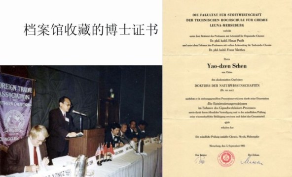 沈尧曾是华理著名的校友,也是华理学子中获得博士学位的第一人。他于1951年9月考取交通大学化学化工系,1952年秋随院系调整转到我校(原华东化工学院)无机物工学专业继续学习。学习期间,沈尧曾同学品学兼优,1956年毕业前获得学校首批“积极贯彻‘三好’、全面发展”的表扬,并以14位特别优秀和成绩显著者荣登学校光荣簿(名誉校长成思危当时也名列其中)。1955年5月10日,他还在我校就读时期就被批准为中国共产党预备党员,是师生一致公认的佼佼者和学习榜样。1956年夏他完成学业,准予毕业,并被我校选送到民主德国(当时的东德)继续深造。通过5年的努力学习,沈尧曾于1961年9月5日获民主德国洛伊纳-梅泽堡技术大学博士学位。
