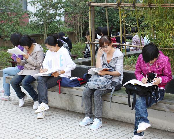 时至如今,华理的学子继承了前辈的优良传统,依然惜时如金,抓紧点滴时间用于学习之上。这幅照片拍摄于2011年10月12日早晨,是为2011级新生在奉贤校园里的学习情景。