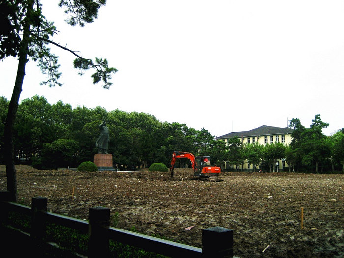 图片说明:2012年8月10日,原草坪被厚厚的新土压在了底下