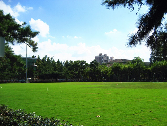 2012年夏天,为迎接建校60周年,学校花“血本”对大草坪作了彻底改造:一是运来了上千吨生土,将整个草地垫高了20来公分(原草坪地势较低,遇有夏季大雨,积水厉害,容易烂草和滋生蚊虫);二是在其地下敷设了排水管道,还有在其浅层安装了sprinkler,可以引用校园河道里的水,来对草皮作大面积的喷淋、浇灌;三是种上了正宗的草皮。经过改造后的大草坪,面貌焕然一新。