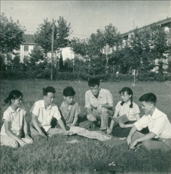 (和平楼背面的露台,左1:陈子秀,左2:冷作述——时任党委副书记)