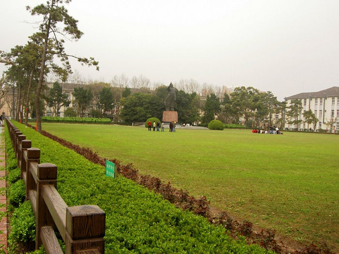 时至2006年,为迎接2007年5月的教育部本科教学工作水平评估,学校对大草坪作了“小改造”——将其四周的冬青树用瓜子黄杨代替,而且还统一安装了“仿古”的假木栏作围栏,予以保护里面的大草坪。