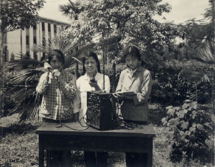 图片说明:化工的学生在学习收发报机技术(1956级抗生素校友刘国贤捐赠)