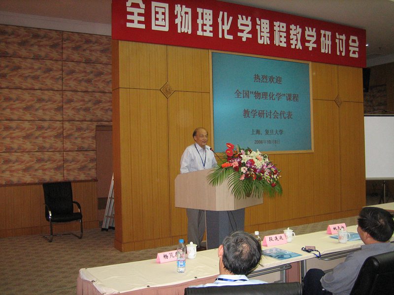 图片说明:在全国物理化学课程教学研讨会上作报告(2006年10月8日)