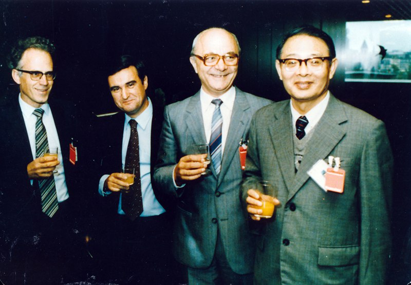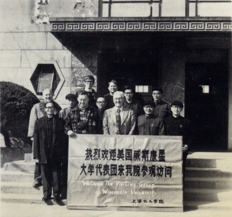 图片说明:朱正华(前排右2)接待来校访问的外宾(1979年)