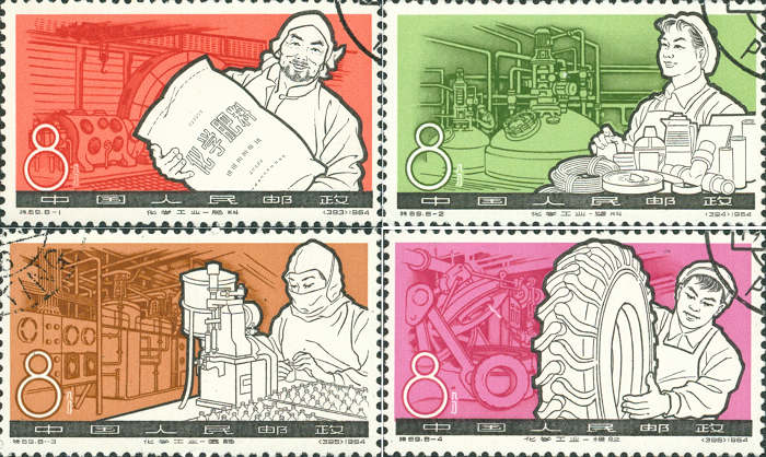 19641230,中国邮电部发行一套化学工业特种邮票,共8枚,以反映中华人民共和国成立15年来在化学工业上取得的成就。作为新中国成立后诞生的第一所化工大学,我校档案馆于新年伊始从网络藏家手中将50年前发行的这套特种邮票拍买回来,丰富实物档案馆藏,非常有纪念意义。