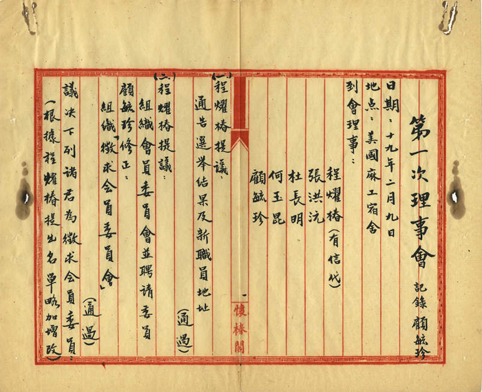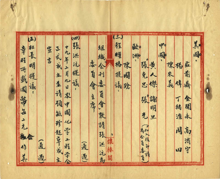 近日,学校档案馆征集到一批见证中国化学工程学会(Chinese Institute of Chemical Engineers)创建时的珍稀档案(50多页第一、二届理事会原始记录,第一届年会合影)。由于这批档案的唯一性和重要史料价值,以及经历了83年风云岁月乃保存完好,故是有偿征集来的,且价格不菲。