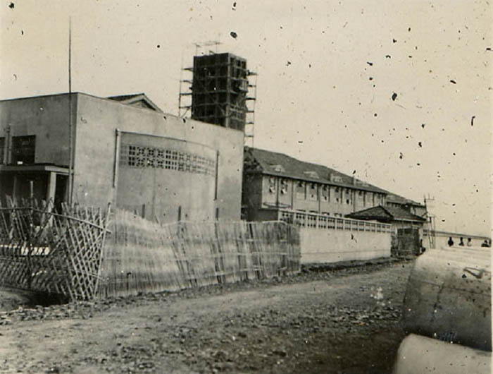 图片说明:建造中的日本国民第七小学(左侧为大礼堂, 1930年代)