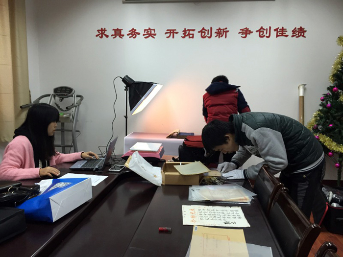 12月15日上午,徐汇区文物文化管理办公室陈震恩等5人来校采集可移动文物信息,学校档案馆作了接待,并配合完成了三件(套)珍藏实物的拍摄、扫描及相关数据的测量。
